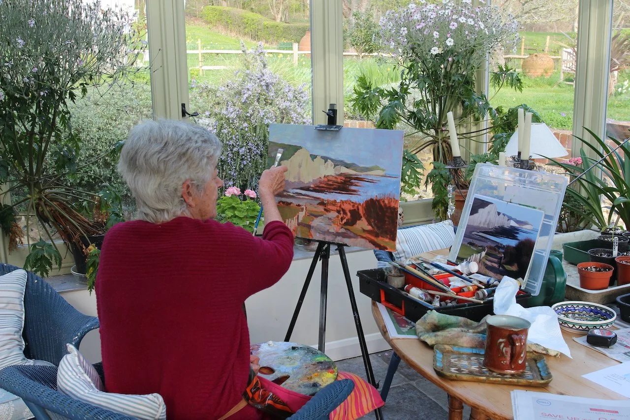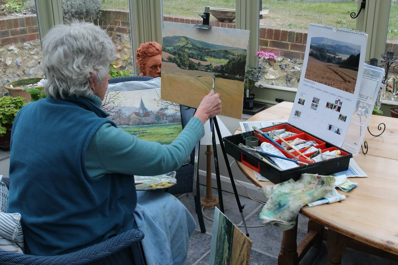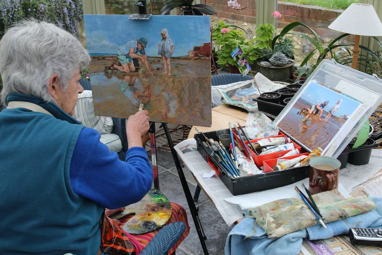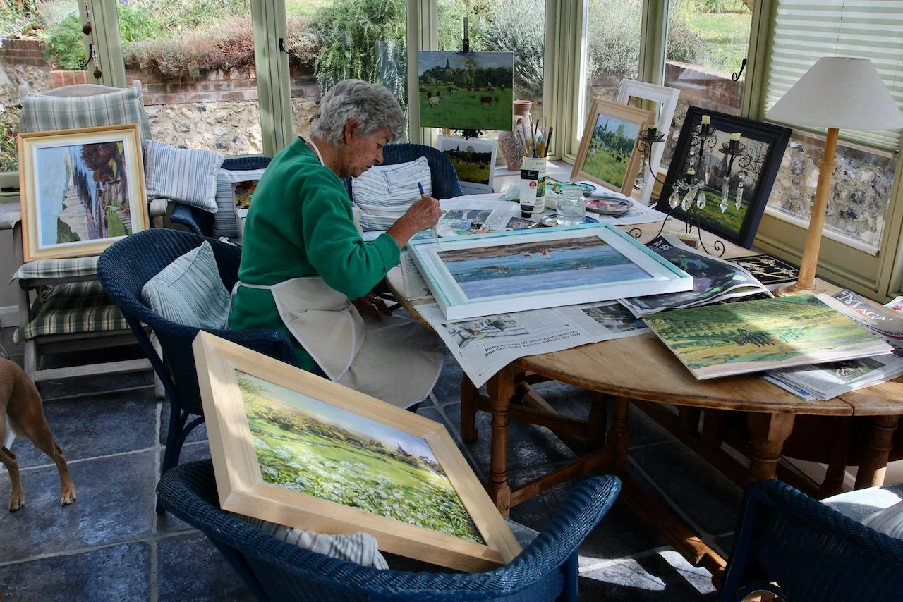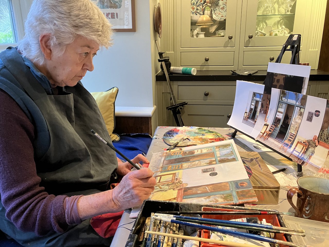 Our mystery artist, her work featured on our card, has a varied portfolio: portraits, people, places and landscapes. She’s exhibited and sold her paintings and, being a generous soul, has even given some away. If you’ve not spotted her artwork yet, this is what you’ve missed: